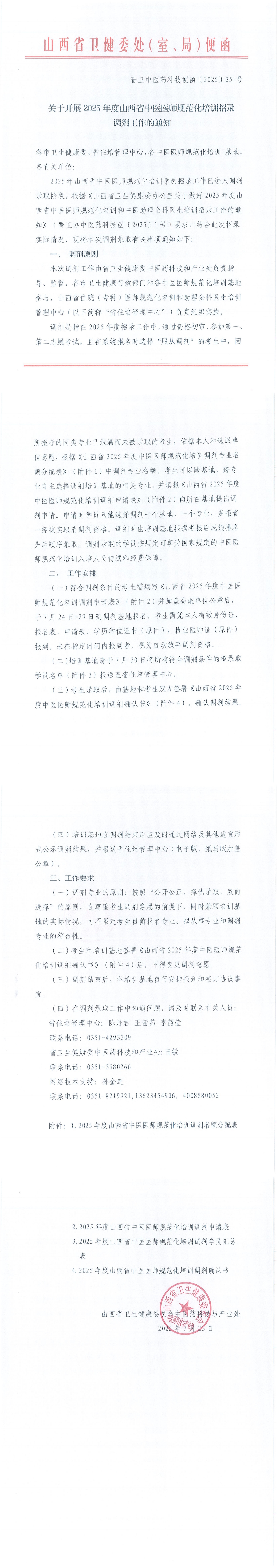 关于开展2025年度山西省中医医师规范化培训招录调剂工作的通知