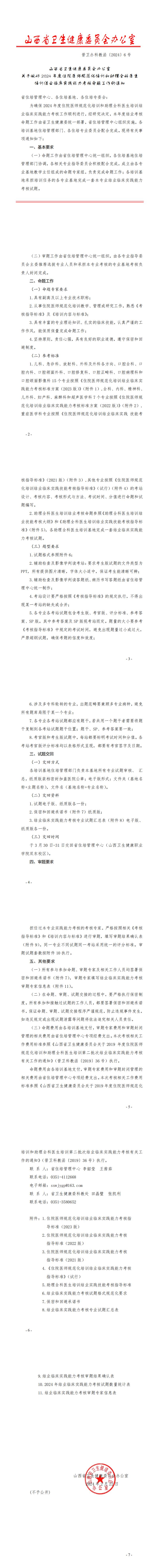 山西省卫生健康委员会办公室关于做好2024年度住院医师规范化培训和助理全科医生培训结业临床实践能力考核命题工作的通知