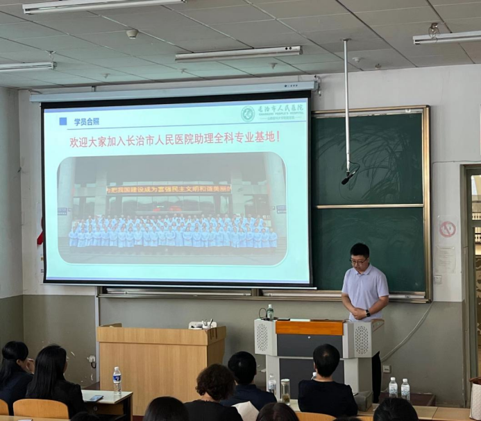 为进一步做好我省助理全科医生培训招录工作,加强对三年制临床医学和中医类学生院校教育与毕业后教育有机衔接,5月30日上午,由山西省住培管理中心组织山西省汾阳医院、长治市人民医院、晋城市人民医院、忻州市人民医院进入山西卫生健康职业学院进行助理全科医生培训招录宣讲。宣讲内容包括:培训制度、基地条件、师资管理、培训管理、培训质量、保障待遇等方面的重点讲解。强化了国家对助理全科医生培训的制度、政策认识,明确了助理全科医生培训的意义在于提高基层医疗水平,增强医疗服务的可及性和质量。为基层医疗、卫生提供综合的医疗服务,更好地满足社区多样化的健康需求,缓解医疗资源不均衡的问题,提升基层医疗卫生服务的可持续发展。